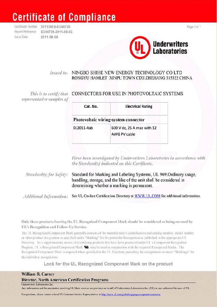 UL-連接器證書(shū)